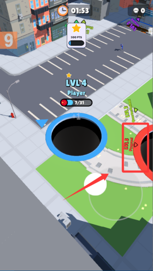 1、核心操作极简,通过虚拟摇杆控制黑洞移动,触屏调整吞噬方向,新手10秒即可掌握基本技巧,但精通需要策略规划。