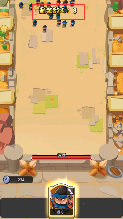 4、上方显示剩余敌人的数量,消灭所有敌人即可完成关卡。