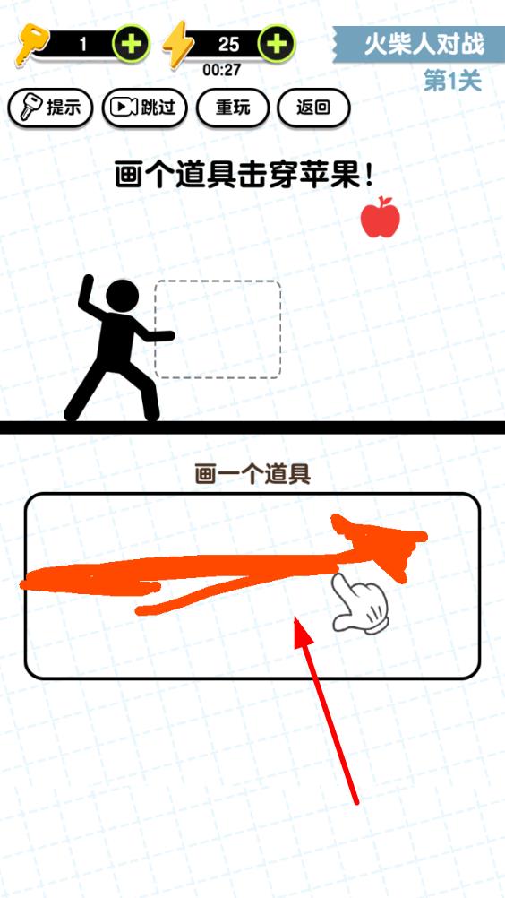 1、进入关卡后先观察火柴人周围的环境布局、存在的障碍与明确的任务目标,再用手指在屏幕上画出线条,为其规划行动路线或解决即时危机。