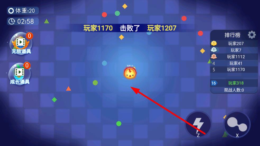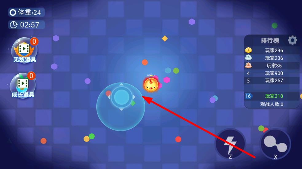 3、排名冲刺方法:当体积足够大时,主动寻找排名靠前的小球进行有策略的挑战,通过精准吞噬对手快速提升排名,全力向榜首发起冲击。