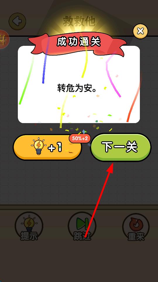 3、成功将火柴人从困境中解救出来,完成当前关卡挑战,解锁下一关,随着关卡推进,解救难题会更加复杂棘手。