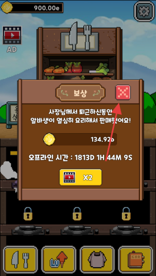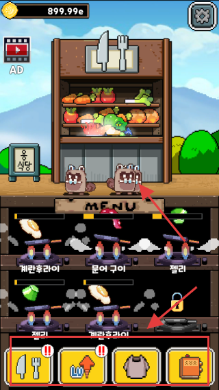 3、在经营界面,点击箭头指向的区域,可能是解锁新菜品或升级相关设施,利用金币推进餐厅经营,提升收益和规模。
