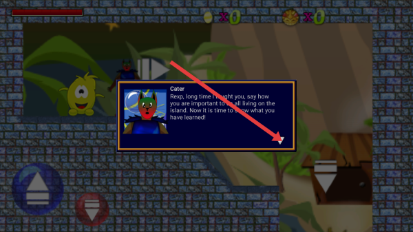 1、进入游戏页面后,触发角色的对话,Cater教导Rexp后,准备开启冒险,根据方框里的指示去展示所学。