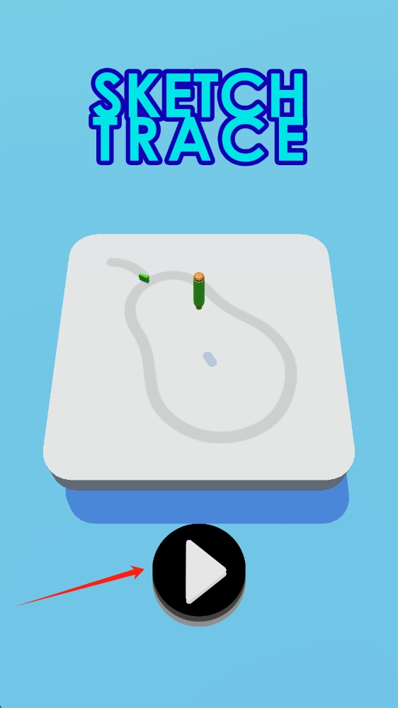 1、游戏名称【Sketch Trace】,界面有带线条轨迹的画板、播放按钮,点击开始游戏。