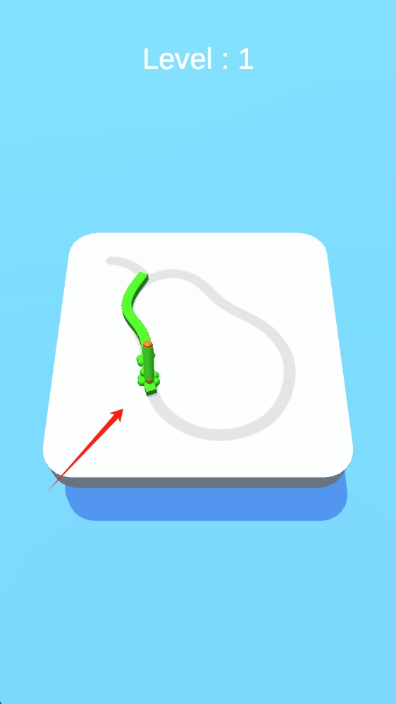 2、游戏【Level:1】(关卡 1 )画面,显示绿色笔沿轨迹绘制的过程,点击鼠标画笔。
