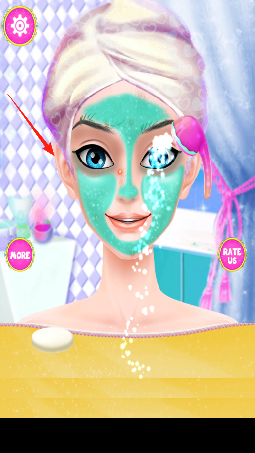 3、到了面膜护理阶段,选择绿色面膜为公主敷脸,再用小工具辅助清洁,通过涂抹、清洗动作,给公主打造精致肌肤,感受从基础护理到深度美妆的进阶玩法,让公主颜值升级。