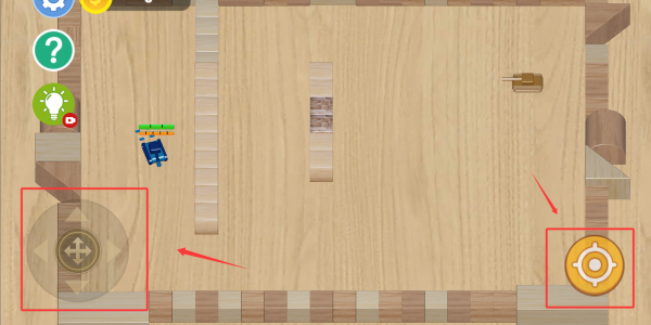 4、左边使移动方向操作,右边的瞄准按钮瞄准敌人点击一下可以发射出导弹击中敌人。