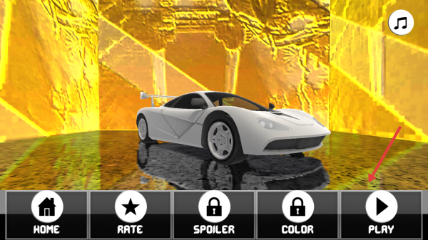 1、在车辆展示界面,点击【PLAY】按钮,驾驶白色跑车开启城市道路驾驶挑战。