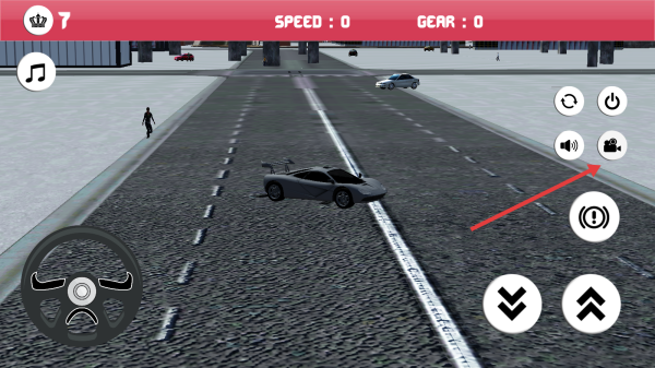 2、进入道路场景,利用右侧上下箭头按键控制车速,配合方向盘,在城市道路行驶。