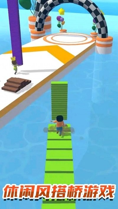 2、竞速搭桥冲终点:核心玩法是收集砖头,与对手赛跑,搭建桥梁直达终点,在竞速的紧张感中感受搭建桥梁的乐趣,目标明确且充满挑战。