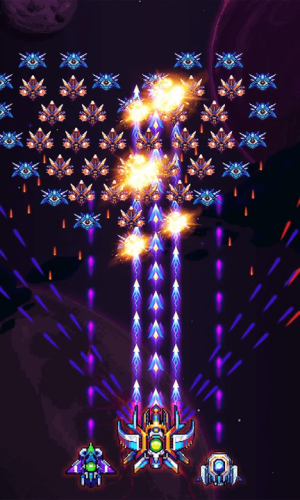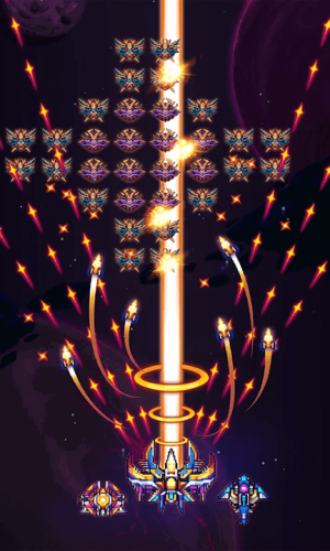 2、游戏采用全屏弹幕射击机制,搭配粒子爆炸特效和动态光影效果,打造出极具视觉冲击力的战斗场面。