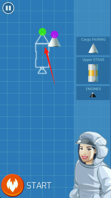 1、进入游戏按箭头指引,依次将右侧的零散部件拖到火箭对应位置(箭头指向),完成组装。