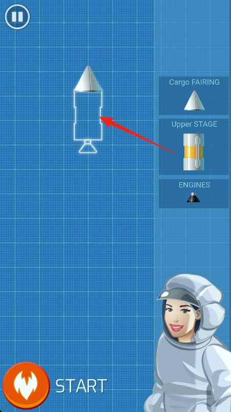 2、组装完成后,点击“START”按钮,进入发射流程,火箭将在轨道上准备起飞。