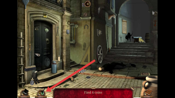 3、根据底部提示【Find 4 coins】,在场景中寻找4枚硬币,若遇困难,可点击左下角【HINT】按钮获取查找提示。