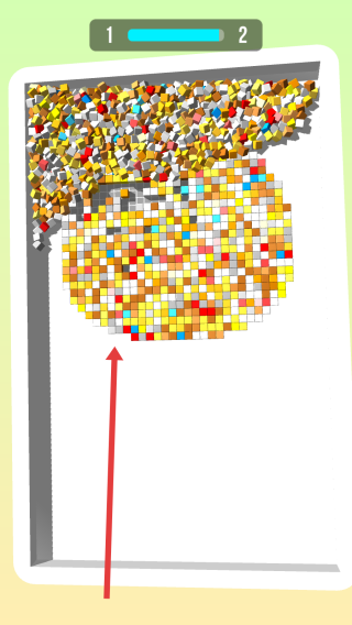 2、滑动屏幕引导彩色珠子下落,填充网格模型(如圆形轮廓),通过调整路径,让珠子精准嵌入,完成图案。