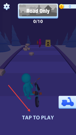1、主界面点击【TAP TO PLAY】,操控蓝色小人骑单车,开启“Road Only”赛道挑战。