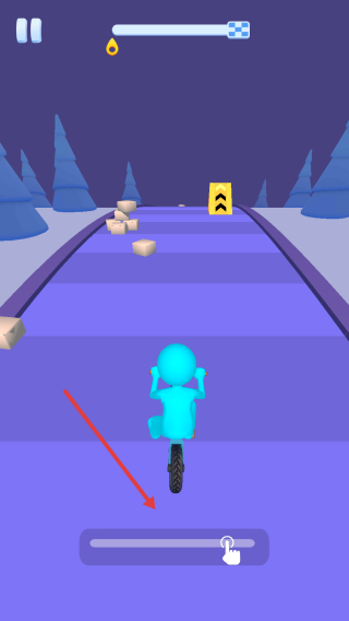 2、骑行中滑动下方进度条,控制单车平衡与速度,躲避石块等路障,持续前进。