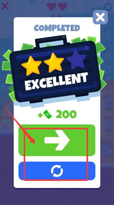3、成功通关后,根据表现领取星数奖励,选择继续征战新关卡。