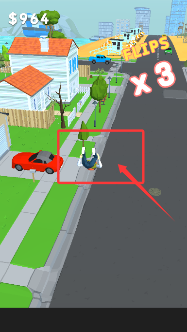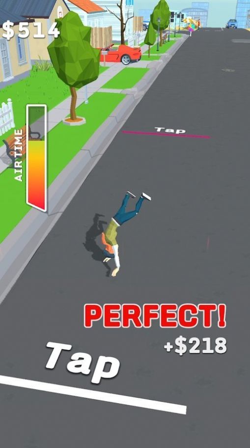 2、通过精准点击控制角色完成炫酷空翻动作,并避开路面障碍物。