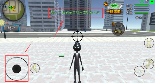 2、需要找到军事坦克,移动左边的方向寻找。