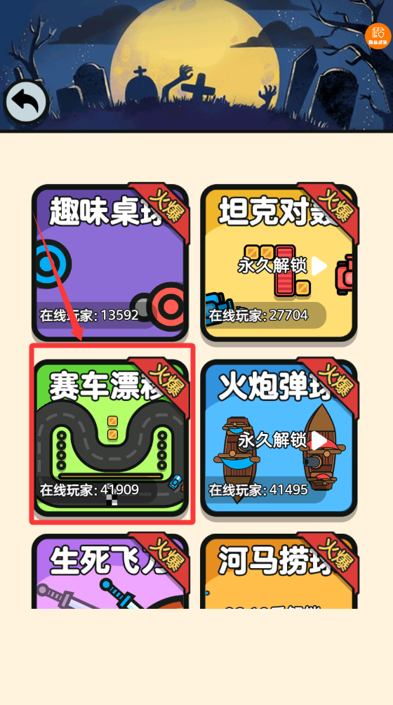 2、点击一下赛车漂移关卡进入页面。