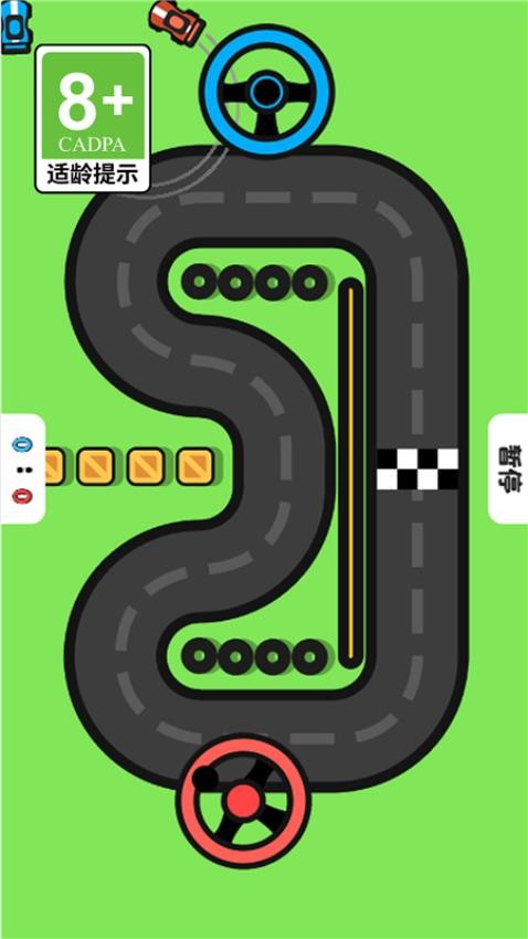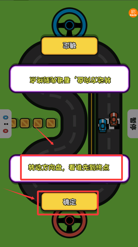 4、操作方向盘前进方向,看谁到终点,按一下确定按钮开始游戏。