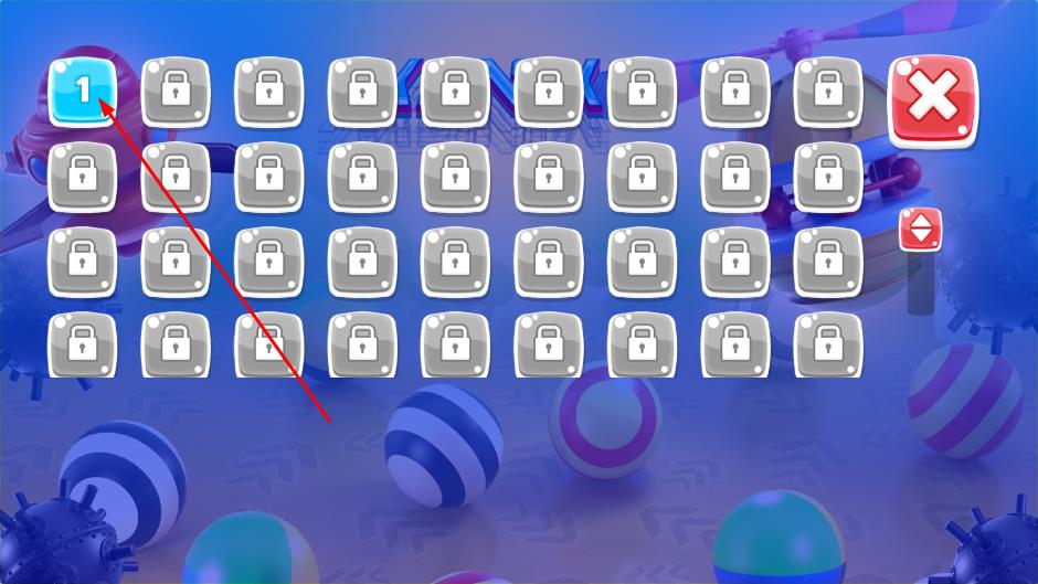 1、在关卡选择界面,点击带数字“1”的蓝色方块,进入首个可玩关卡,开启挑战。