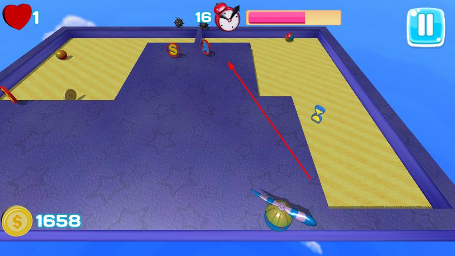 3、在复杂场景中,留意限时、爱心等状态,躲避障碍,收集道具,朝着关卡目标推进。