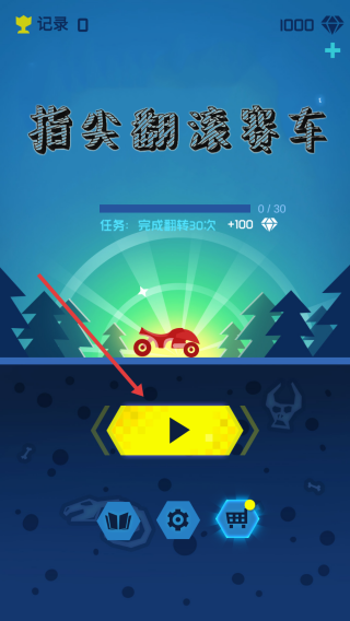 1、主界面点黄色播放键,开启“指尖翻滚赛车”游戏,目标完成30次翻转任务 。