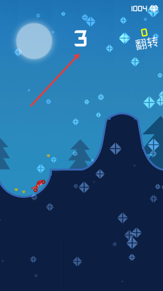 3、行驶中关注上方数字(如“3” ),借地形起伏让摩托腾空翻转,积累翻转次数 。