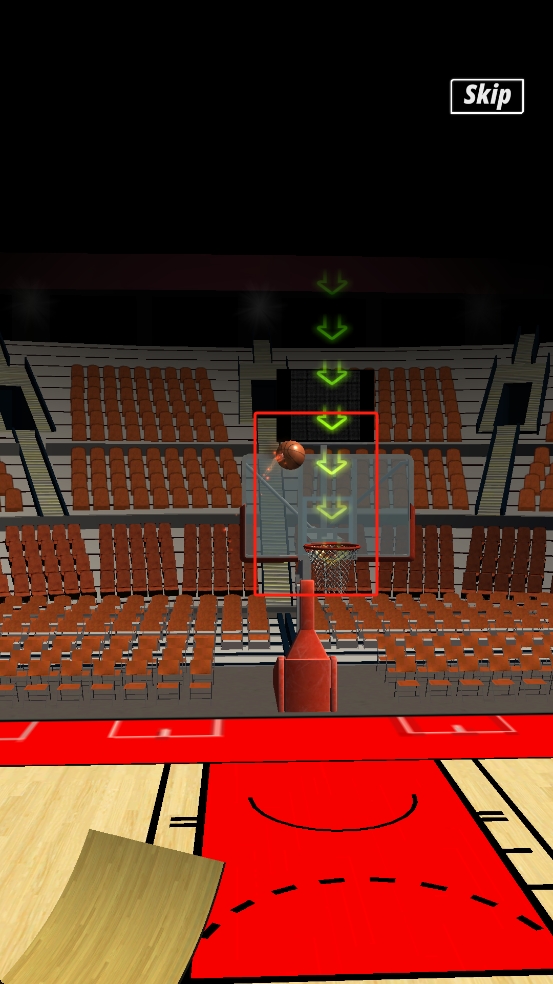 2、发射后紧盯篮球轨迹,依据篮筐上方绿色指引调整视角,若轨迹偏差,可借助场景判断微调。