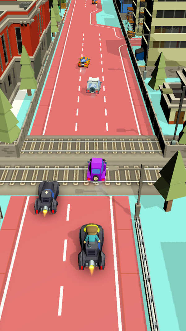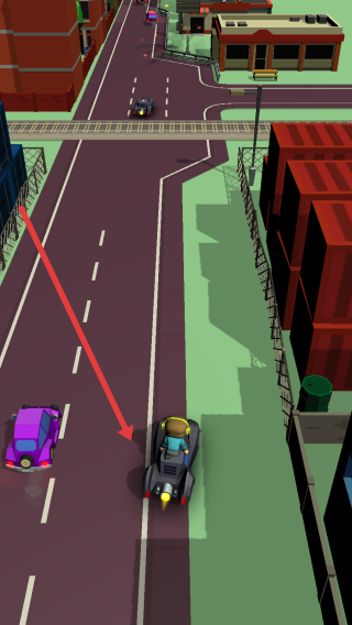 3、成功抢夺紫色车后,驾驶新车在公路挑战,突破更长路段,收集道具、积累分数,解锁更多车辆,推进游戏进度。