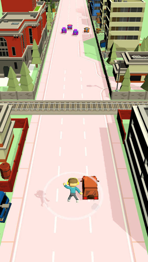 1、奔跑偷车闯关:控制角色向前奔跑,找准时机跳跃至他人车辆上完成偷窃,避免因空中无法移动而摔落,确保持续前进。
