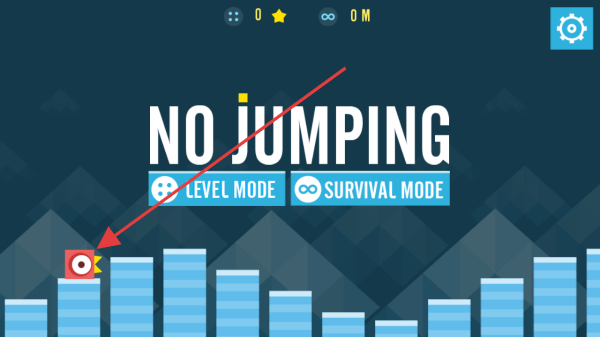 1、点击红色方块角色,选择模式,开始【NO JUMPING】挑战。
