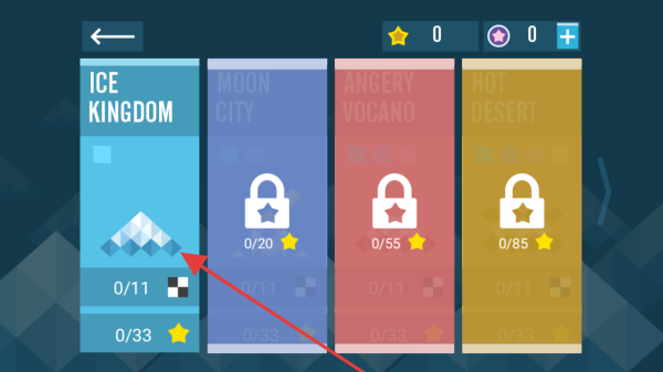 2、在关卡选择,进入【ICE KINGDOM】,收集星星,解锁后续关卡。