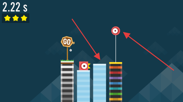 3、操控红色角色,在平台间移动,限时内到达终点,获取三星。