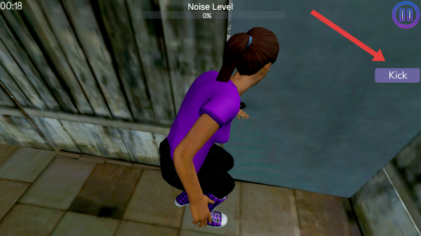 1、需要点击右侧【Kick】的按钮,触发角色踢击门的动作,门没有被踢开说明这个方法不行,需要寻找线索。