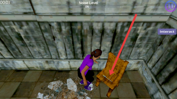 2、需要观察房间内木椅上的工具,如何点击【Interact】的交互拾取,获取关键道具,助力后续逃脱房间。