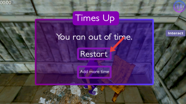 3、时间耗尽显示「Times Up」,需要点击【Restart】的按钮,重新开始当前关卡,重试进行挑战。