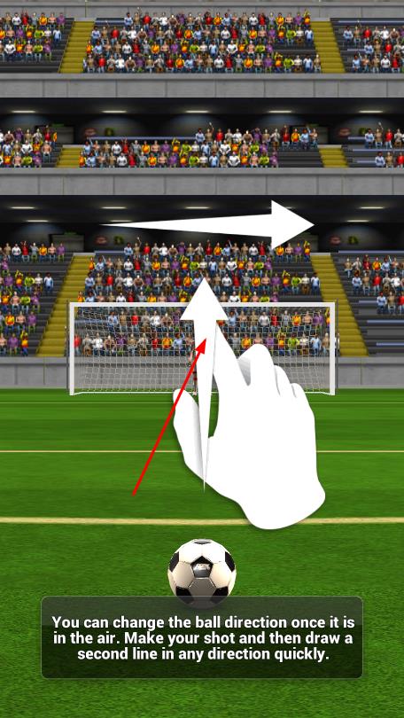 2、球在空中时,可快速再划一条线,改变球的飞行方向,调整射门轨迹。