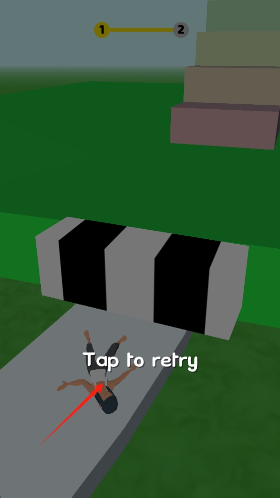 3、游戏失败画面,角色摔倒在障碍物前,“Tap to retry”(点击重试 )提示,点击重开。