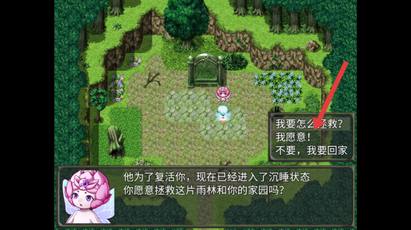 1、进入游戏后与仙子进行对话,触发选项选择「我愿意」,承接拯救雨林与家园的任务,推进游戏的主线剧情。