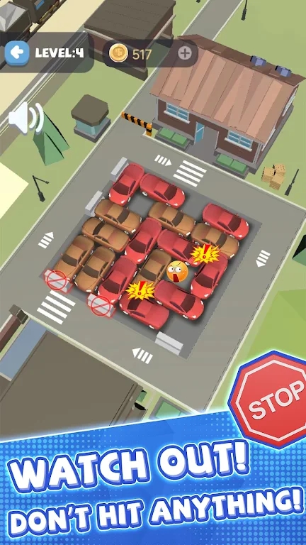 2、关卡中,需规划车辆驶出顺序,避免拥堵,优先让无阻挡、易通行的车辆出库,玩家需要注意避免车辆在驶出时互相碰撞,造成金钱损失。
