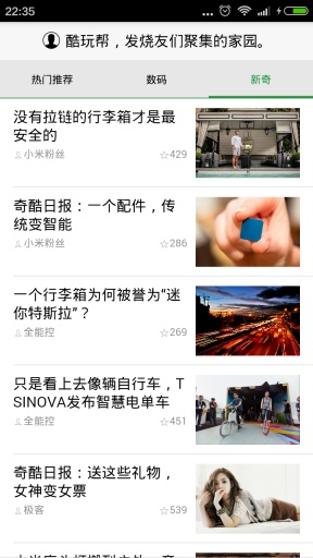 酷玩帮app是一款为用户提供当下最新鲜最奇特科技产品资讯的手机应用,想了解全世界有有了哪些新发明,想感受科技的奇妙力量,下载酷玩帮,感受科技带来的改变。