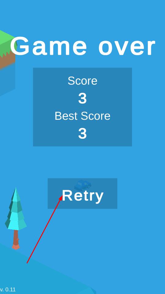 3、若小车坠落,界面显示“Game over”及分数,点击“Retry”可重新挑战,争取更高成绩。