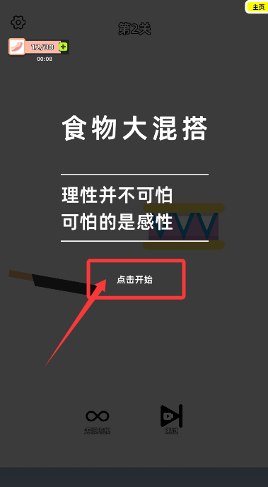 1、启动游戏,进入到第2关卡“点击开始”按钮,感受搞怪闯关的乐趣。
