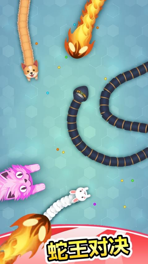2、个性化成长路线,通过吞噬不同颜色食物解锁技能。红色食物增强速度,蓝色食物获得护盾,自由搭配培养专属战蛇。