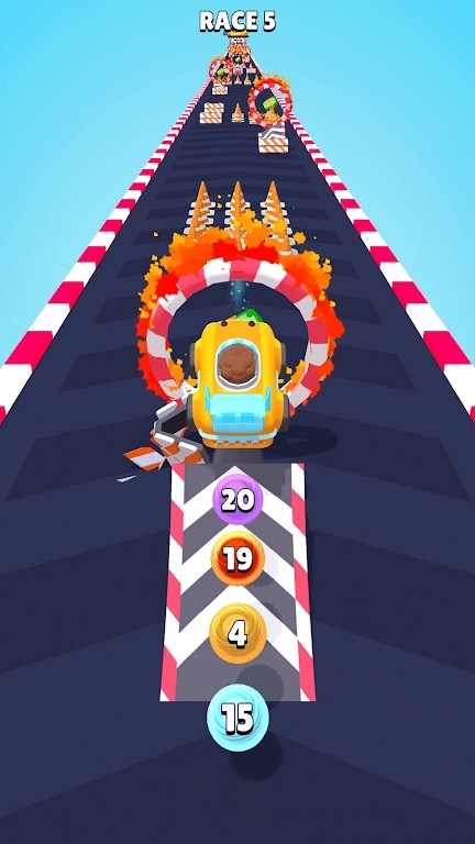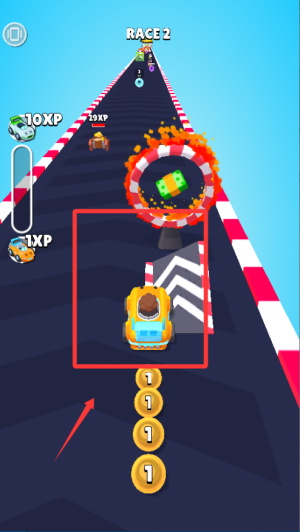 3、注意赛道中的障碍和可拾取道具,灵活调整方向躲避危险同时收集资源提升整体竞速优势。