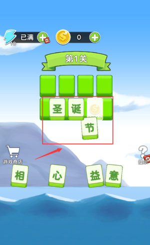 2、将底部方块拖到上方,拼出圣诞节日成语。