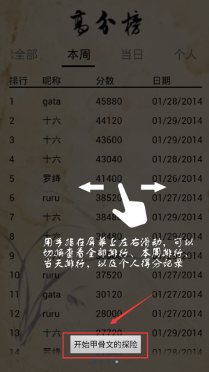 4、左右滑动屏幕,切换查看不同排行类型,点击开始甲骨文探险。